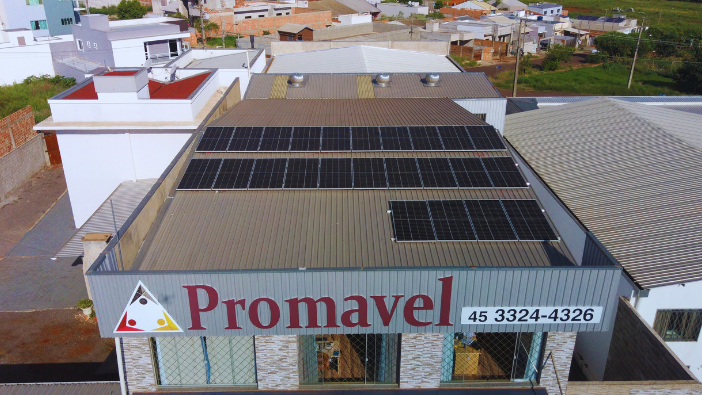 Usina  de Energia Solar instalado pela Voltes Energia Solar na Promavel na cidade de Cascavel - PR. O sistema de energia solar comercial foi projetado abater o consumo da empresa e da residência dos proprietários.